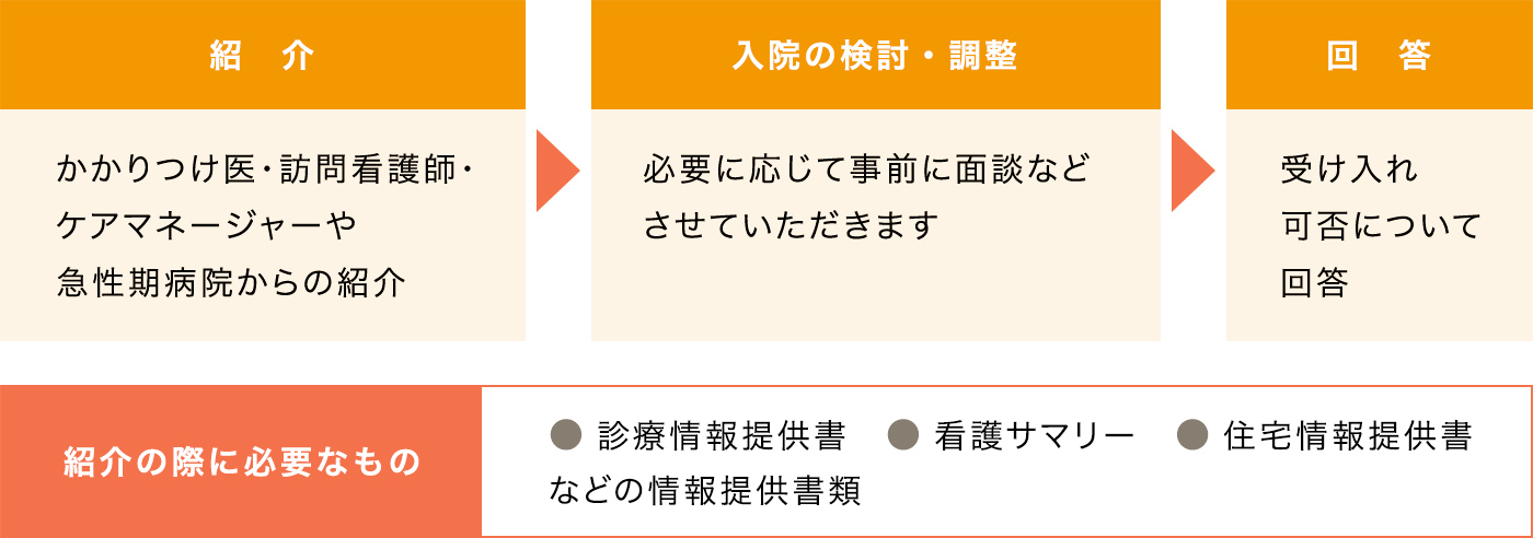 ※入院期間は、法令に基づき最長60日までとなります。また、レスパイト入院は14日までとさせていただきます。