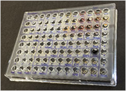 培地に発育してきた菌を微生物自動分析装置にて分析します。菌の名前と薬剤感受性検査(どの薬が効くか)などを検査します。