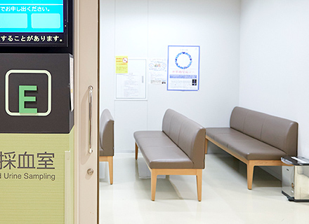 ※不在の場合は掲示板下部に番号が表示されますので、受付までお申し出ください。 - 掲示板に表示された番号までの方は、採血室の中待合で掛けてお待ちください。