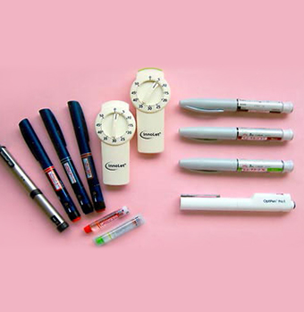 「インクレチン」とは食事摂取に伴い消化管から分泌され,膵臓に作用してインスリン分泌を促進するホルモンの総称です。これまでにGIPとGLP-1の2つのホルモンが、「インクレチン」として機能することが確認されています。インクレチンを分解するDPP-4という酵素を阻害することでインクレチンの働きを長続きさせるようにした内服薬がDPP4阻害薬と呼ばれる内服薬です。一方、GLP- 1の構造を少し変えて(アミノ酸の配列の変更など)、DPP-4による分解を受けにくくしたのがGLP-1アナログという薬です。アナログとは「類似の」という意味で、GLP-1そのものではないけれどもほぼ同じ働きをするということです。この薬は注射製剤なので定められた回数を患者さんご自身で注射する必要があります。この注射指導も外来で行っています。
