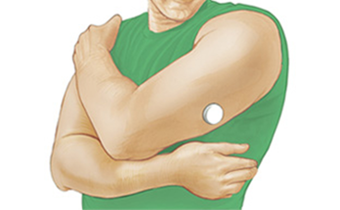 センサーを装着するだけで最大2週間、24時間にわたる血糖値を知ることができるFreeStyleリブレProとリブレを当院では使用しています。腕の後ろに500円玉くらいの大きさのセンサーを装着するだけで自分の血糖値を知ることができます。センサー装着時もほとんど痛みはなく、装着後もほとんど違和感がありません。
