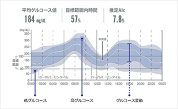 自分の24時間にわたる血糖値を知ることで、食事や運動の内容・薬の内容やインスリン量を見直すことができ、血糖コントロールの改善が期待できます。