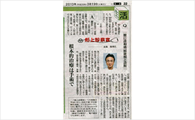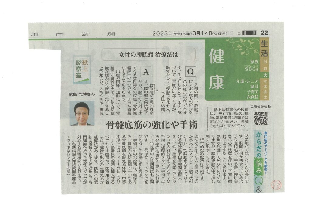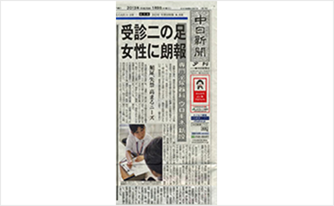 開設後順調に稼働し、平成25年1月9日の中日新聞夕刊で紹介されました。また、骨盤臓器脱の治療相談も平成25年3月19日中日新聞『紙上診察室』に掲載されました。