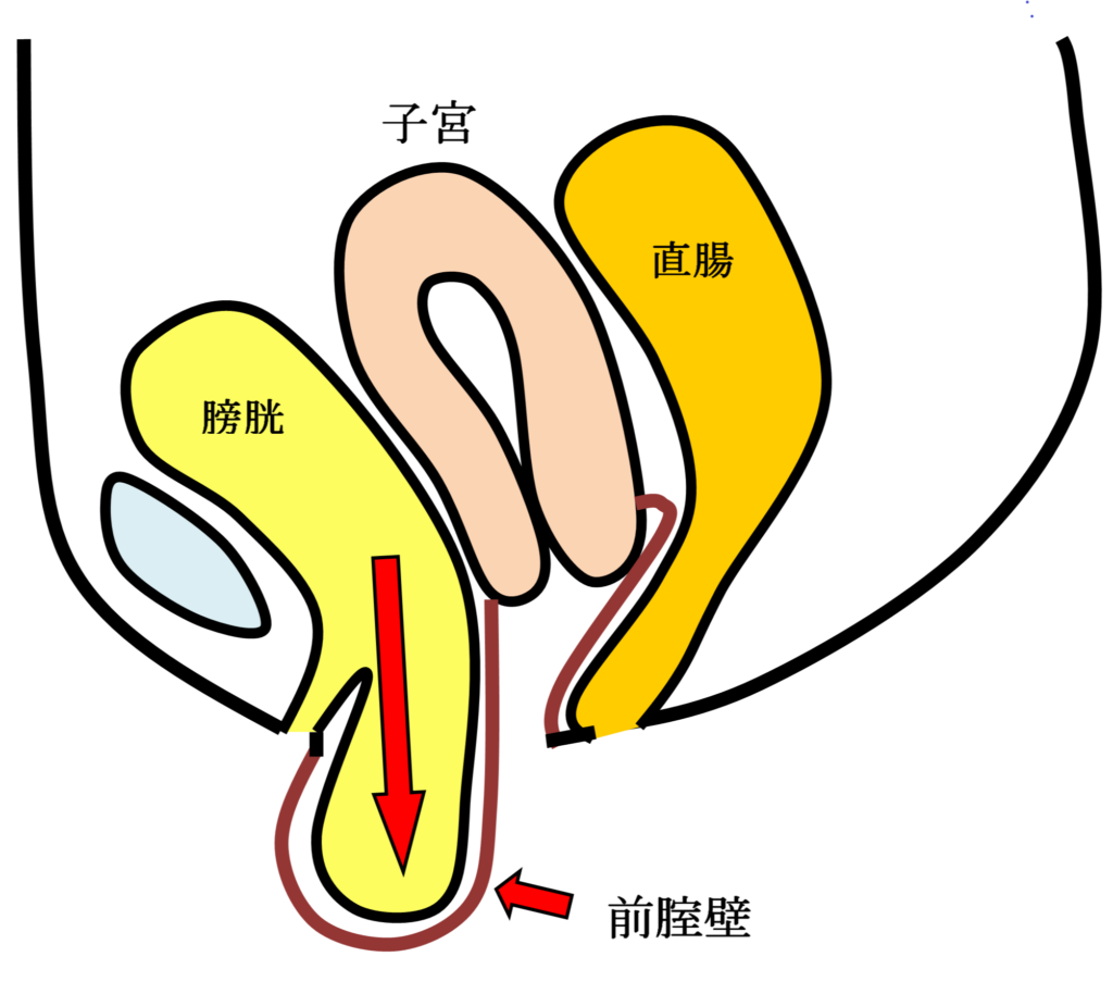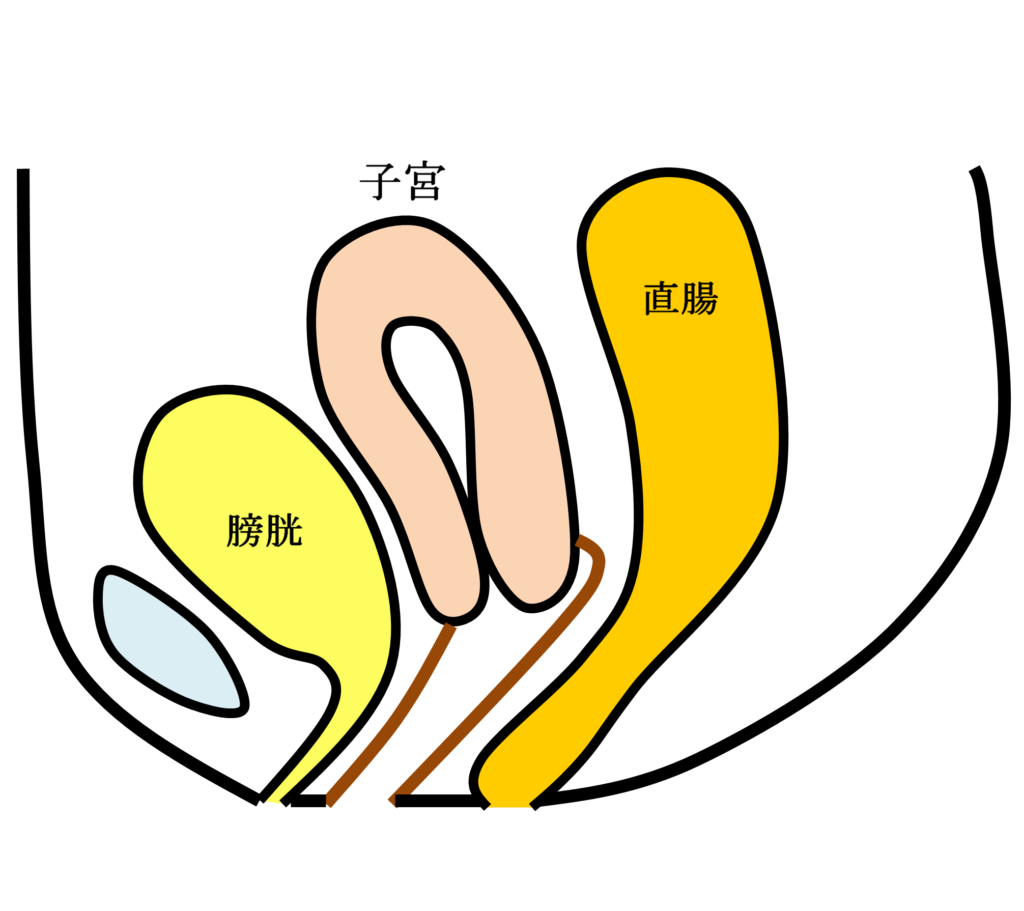 骨盤臓器脱と同じようにお産などによる骨盤内支持組織の裂傷などが主な原因で発症する疾患です。