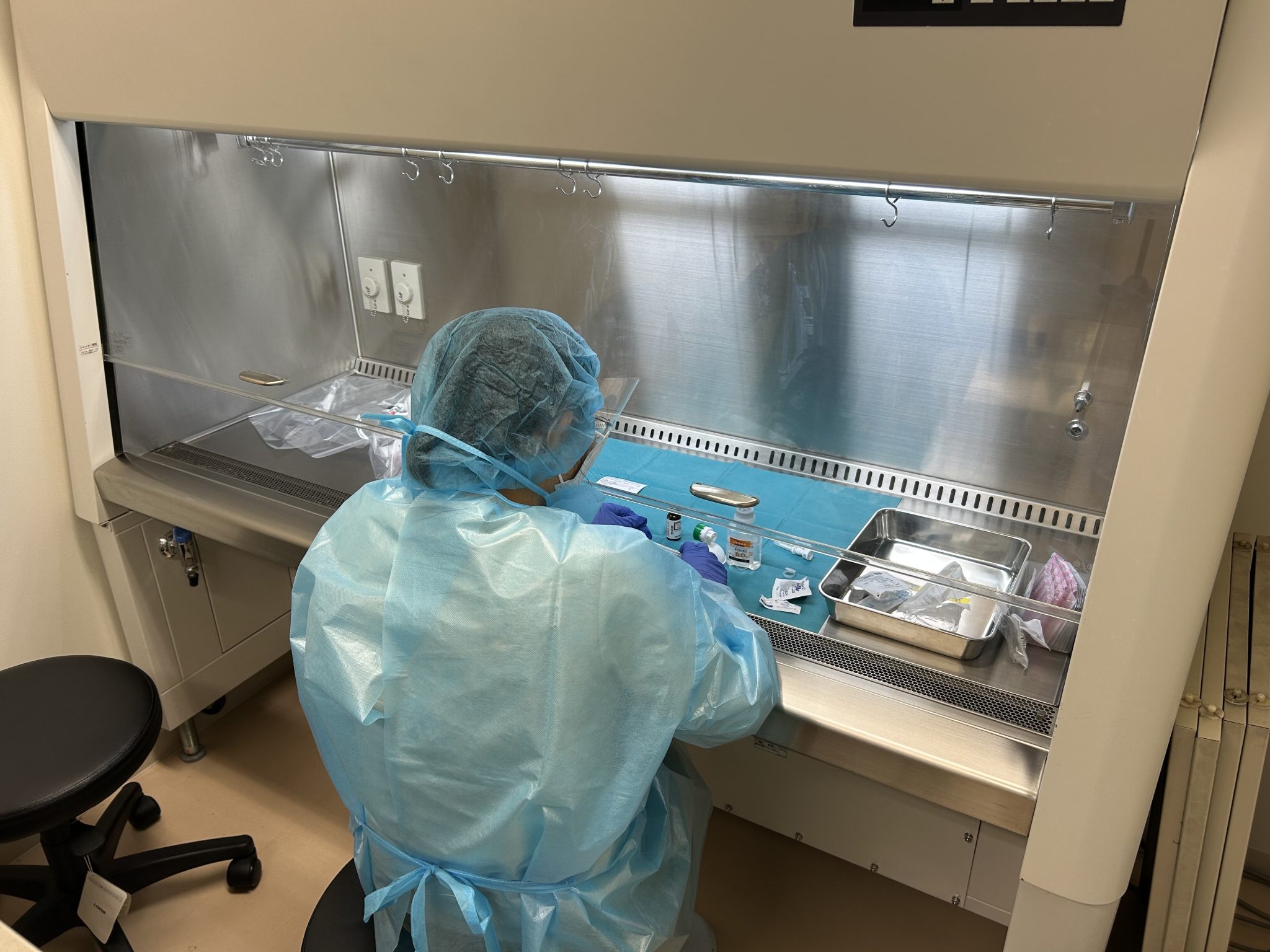 クリーンベンチでの高カロリー輸液の無菌調整