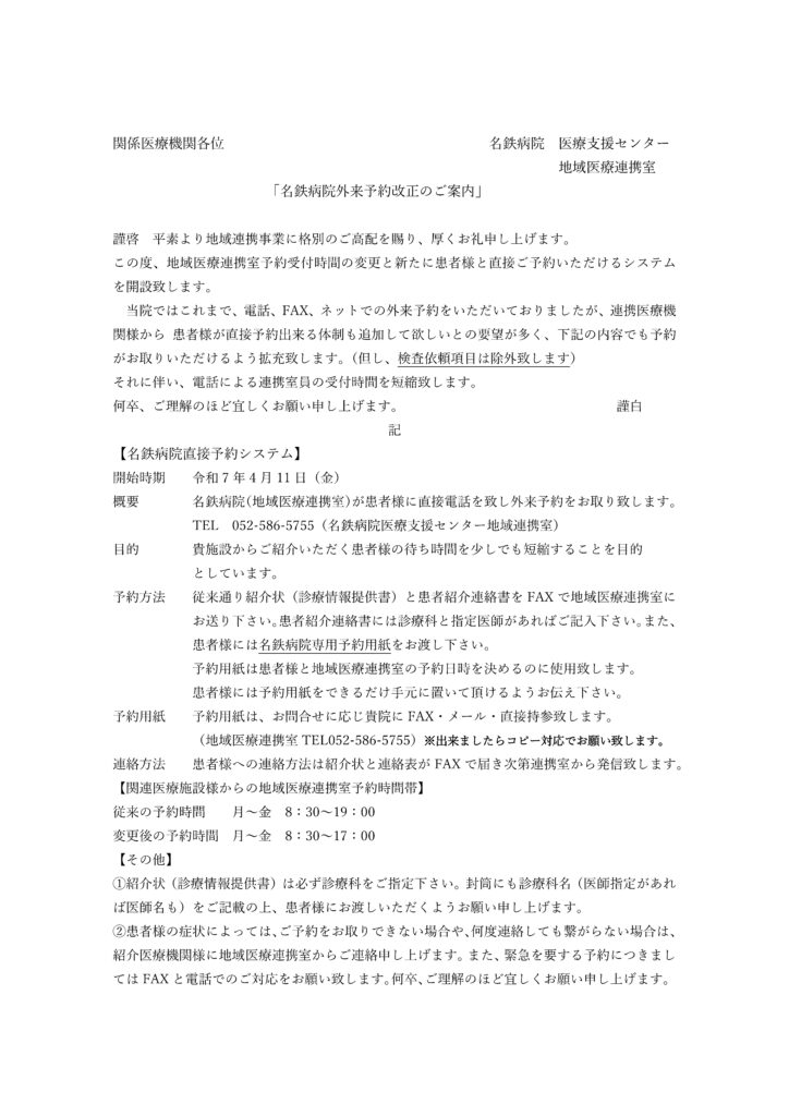 【医療機関の皆様】「外来予約改正」について